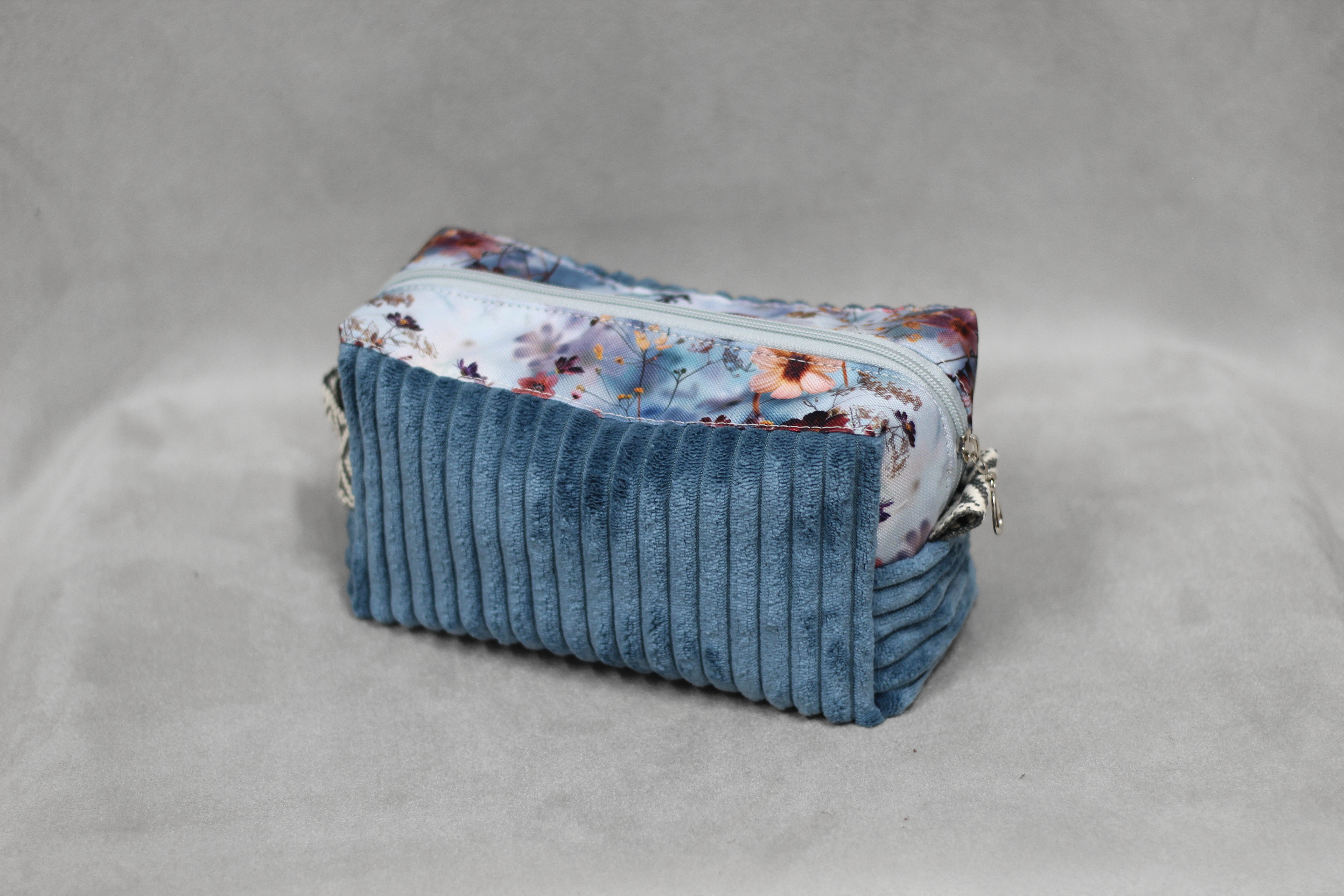 Vzorovaná kočárkovina v kombinaci s hebkým manšestrem vytváří originální kousek, který ti dobře poslouží na kosmetiku, drobnosti do kabelky nebo jako organizér na cesty.