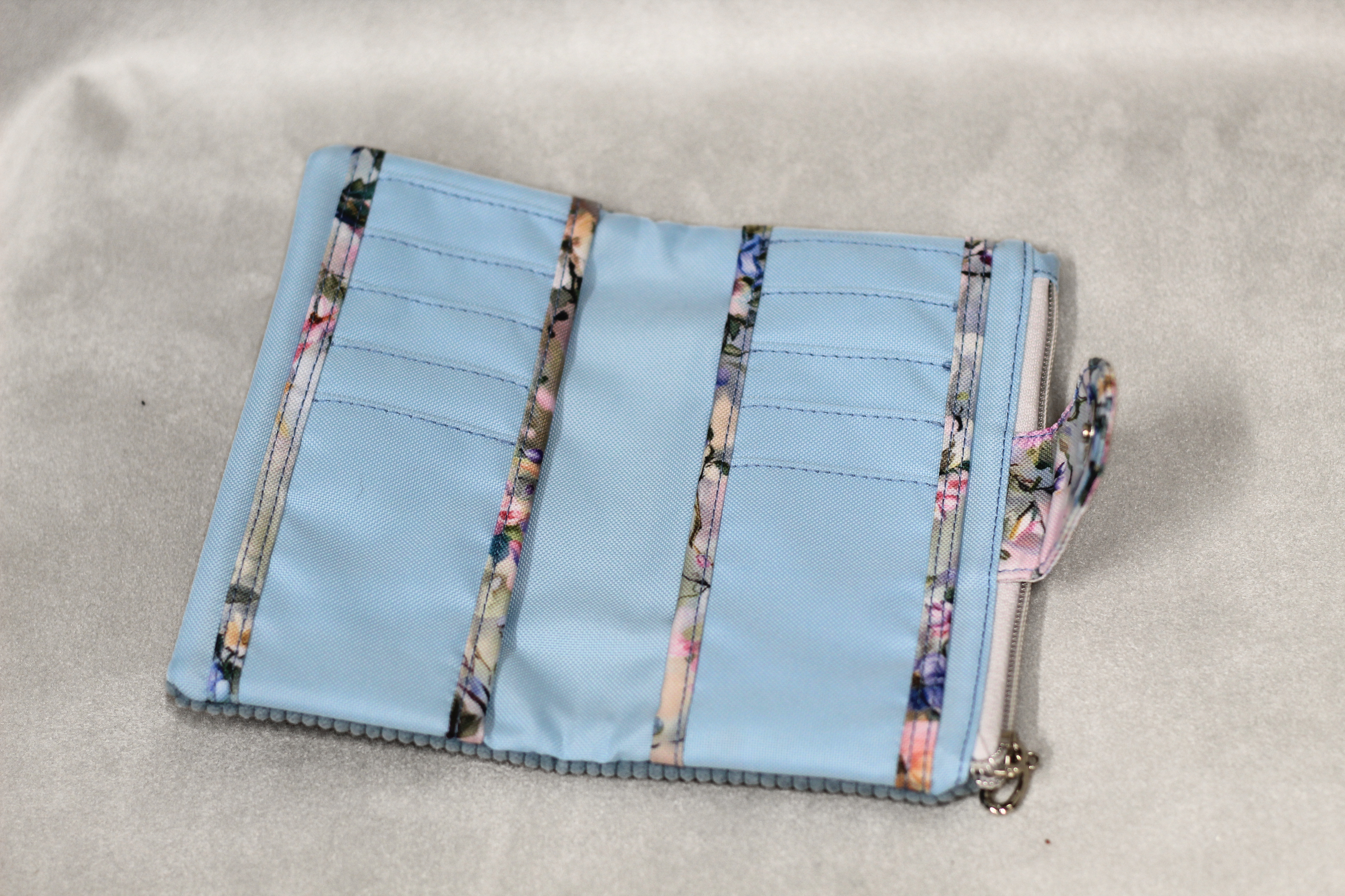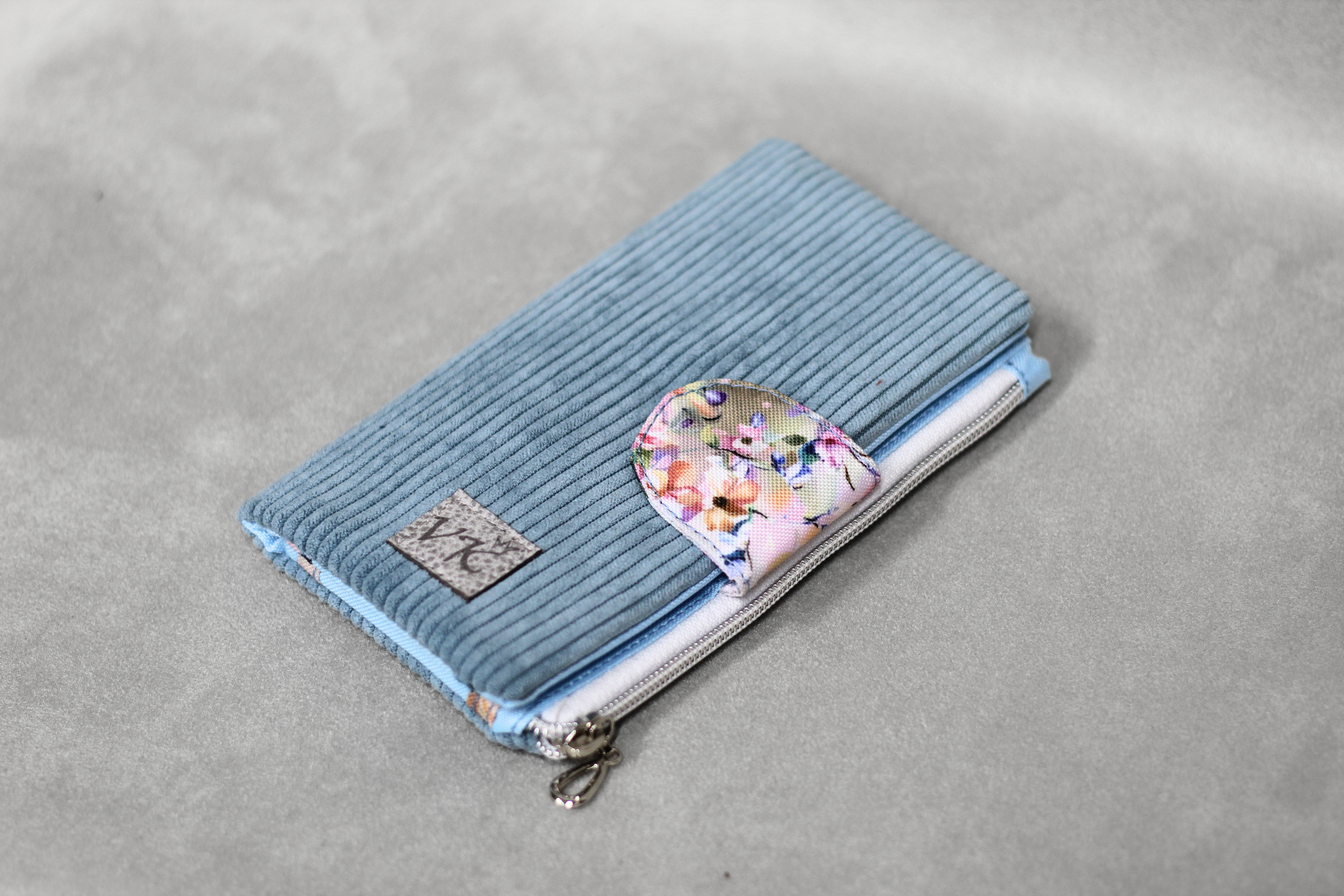 Peněženka ve světle modrém manšestru.